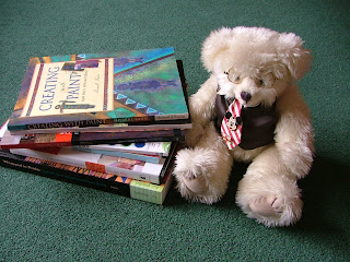 Fortunately much of the booty coincided with the Supply list for a Studio Journals class I have signed up for, so I have decided not to involve the Fraud Squad as it is possible he was only trying to save me shopping time. The books on the other hand seem to be merely a gleeful shopping trip. His response under caution to that allegation was, "But they are out of print." I have bailed him while I read the books for evidence of his defence.